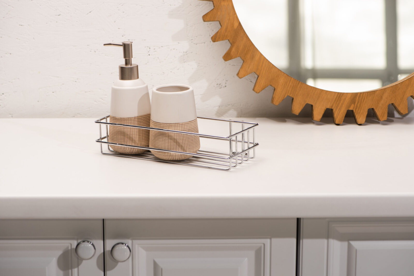 Un altro must-have è il dispenser per sapone, un’alternativa elegante e igienica ai flaconi di plastica.