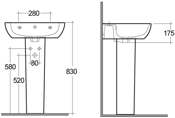La Colonna per Lavabo – Caroline realizzata dal brand Rak in porcellana bianca, è il complemento per Lavabo – Caroline utile a sostenere il lavabo e a coprire le tubature e il sifone.