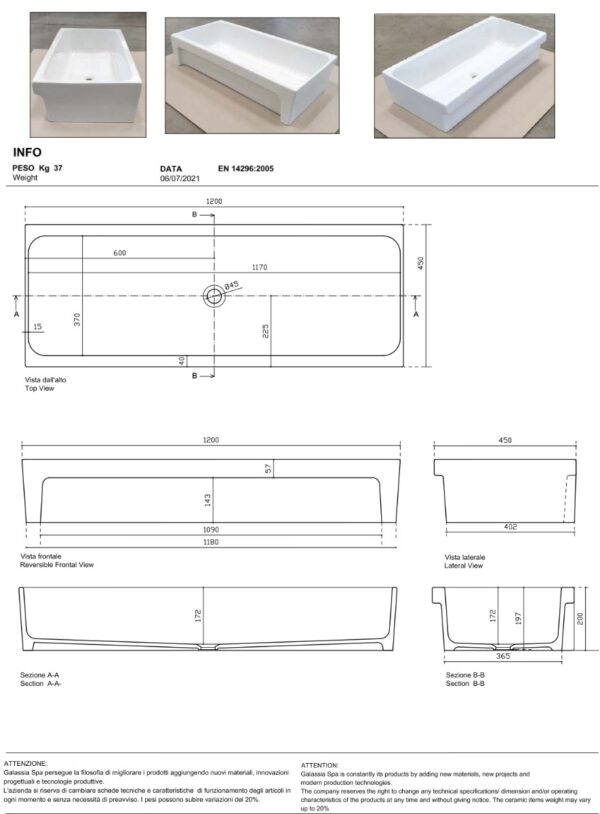 Lavabo d’appoggio 120x45x20cm – La10