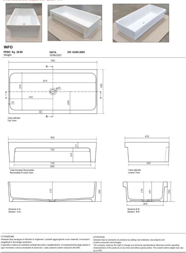 Il Lavabo da Appoggio 90x45x20cm – La10 in ceramica Bianca del brand Galassia è il lavandino a canale per il bagno di casa dal design spiccato ed innovativo.