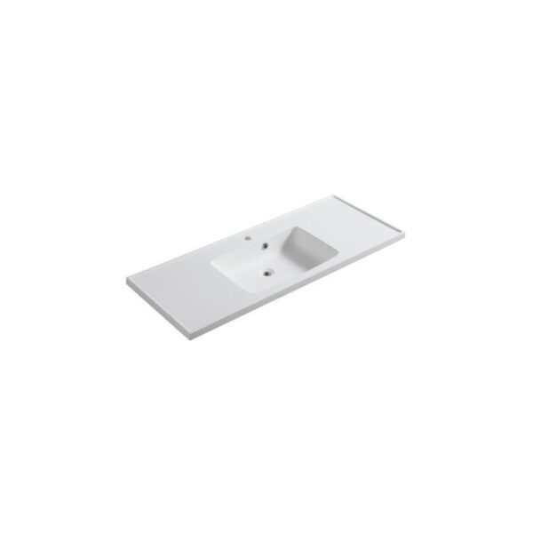 La Base in Resina per Lavabi 121x46x12cm SX Bianco è il piano per lavabi da appoggio dedicato alla linea Emotion, serie Sense e Simpathy, realizzato dal brand Dianhydro.