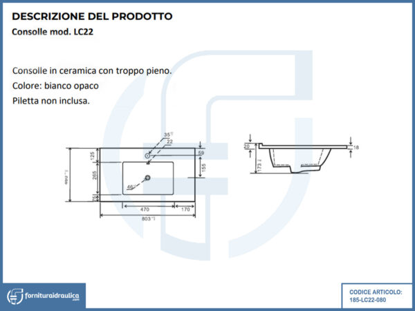 Il Lavabo a Consolle Mobile Bagno 81x46cm Lc22 realizzato dal brand Linpha è l’elemento di arredo bagno dal design funzionale ed elegante.