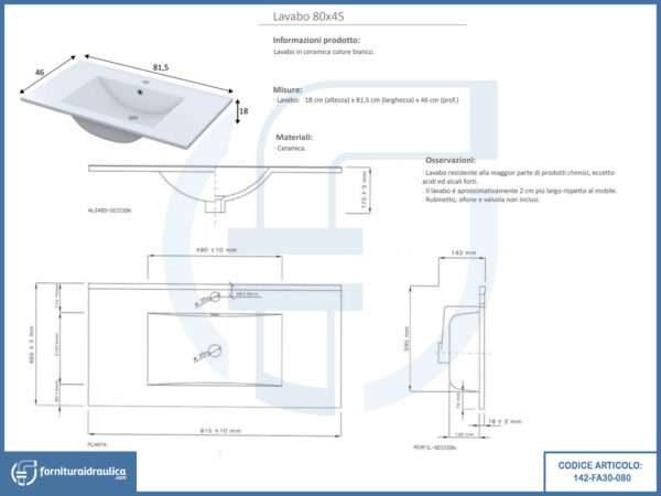 Lavabo consolle in ceramica 80x45cm