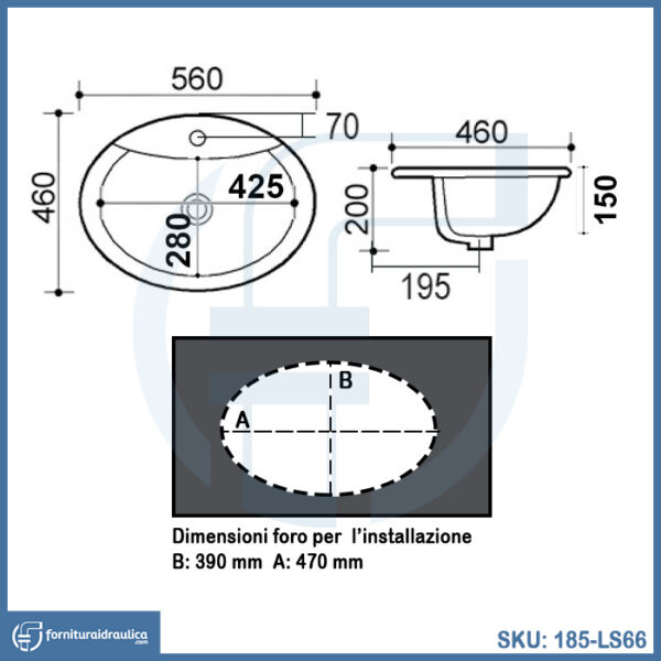 Lavabo sopra – piano con foro rubinetto 56x46cm – LS66