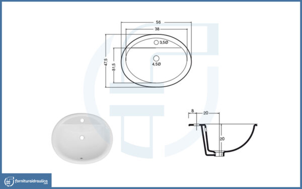 Lavabo Semincasso 64x47cm in ceramica bianca, dal design contemporaneo e funzionale, resistente nel tempo.