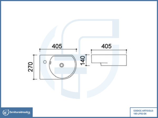 Lavabo a parete vasca destra 40,5x27cm – Lp92