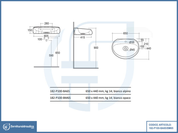 Lavabo sospeso 65cm bianco alpino – Cloud