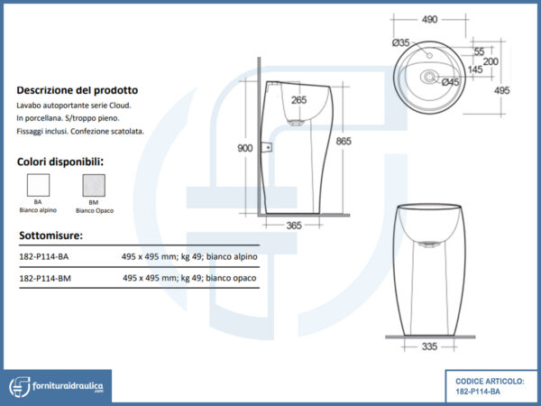 Lavabo autoportante con foro per rubinetto bianco alpino – Cloud