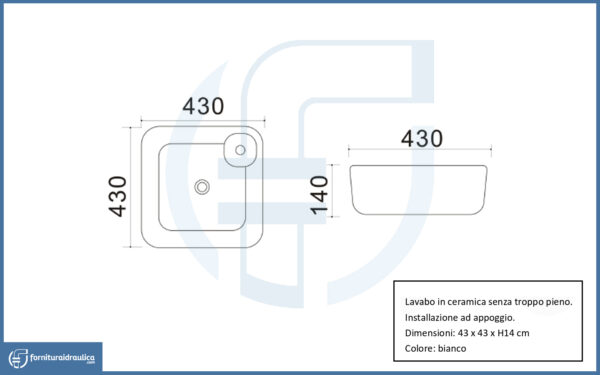 Lavabo da Appoggio 42x42cm – La56 in ceramica Bianca dalla forma quadrata: estetica gradevole per una fruizione e una funzionalità semplice.