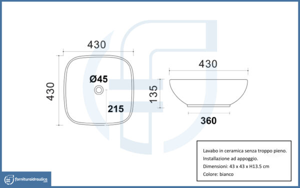 Lavabo d’appoggio 43x43cm – La55