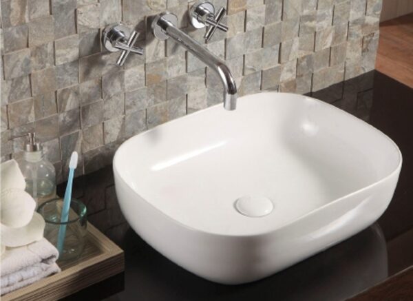 Lavabo da Appoggio 49×39,5cm – La48 in ceramica Bianca dalla forma rettangolare è il lavandino per bagno dai bordi sottili e dal taglio distintivo.