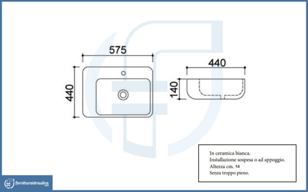 Lavabo da Appoggio 57,5×44,cm – La44 in ceramica Bianca rettangolare, è il lavandino dall’impatto estetico gradevole adatto a tutti gli ambienti bagno.
