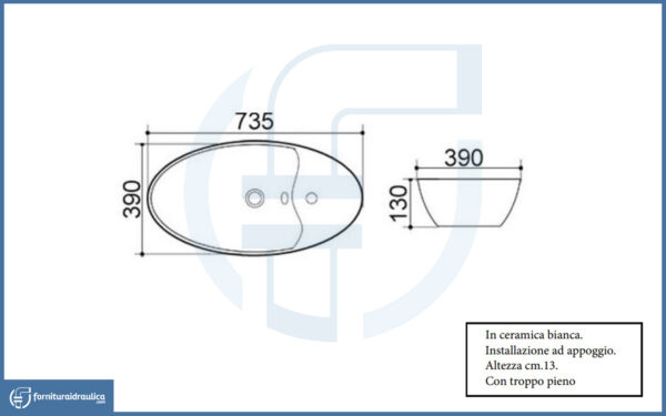 La forma ovale, sobria e armoniosa, lo rende adatto a contesti sia residenziali che professionali, come hotel, B&B o spa.