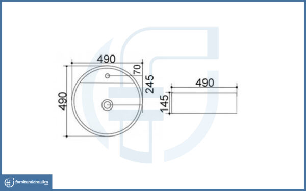 Lavabo da Appoggio diametro 49cm – La29 in ceramica bianca, sanitario per bagno dalla forma tonda con linee semplici ma eleganti.