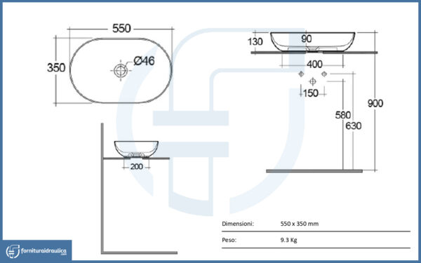 Il design d’appoggio consente un’installazione semplice su vari tipi di piani, offrendo libertà nella scelta della rubinetteria, che può essere montata sia sul piano che a parete, in base alle esigenze estetiche e funzionali.