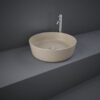 Lavabo da Appoggio Tondo Beige Opaco Feeling in porcellana dalla forma tonda, con bordi sottili: design elegante e funzionale per il bagno di casa.