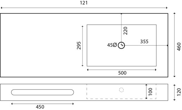 La Base in Resina per Lavabi 121x46x12cm DX Bianco è il piano per lavabi da appoggio dedicato alla linea Emotion, serie Sense e Simpathy, realizzato dal brand Dianhydro.