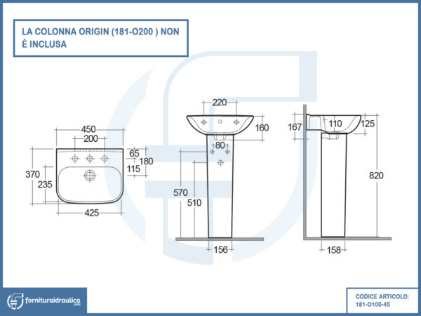Realizzato in ceramica bianca, è dotato di foro monocomando e troppopieno. Viene fornito completo di fissaggi in confezione scatolata. Il montaggio a parete garantisce stabilità e praticità, e può essere completato con la Colonna per Lavabo della linea Origin.