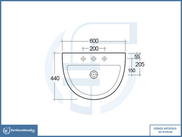 Lavabo 60cm Morning Rak in porcellana bianca con lunghezza di 60cm, dal design contemporaneo e resistente al tempo.